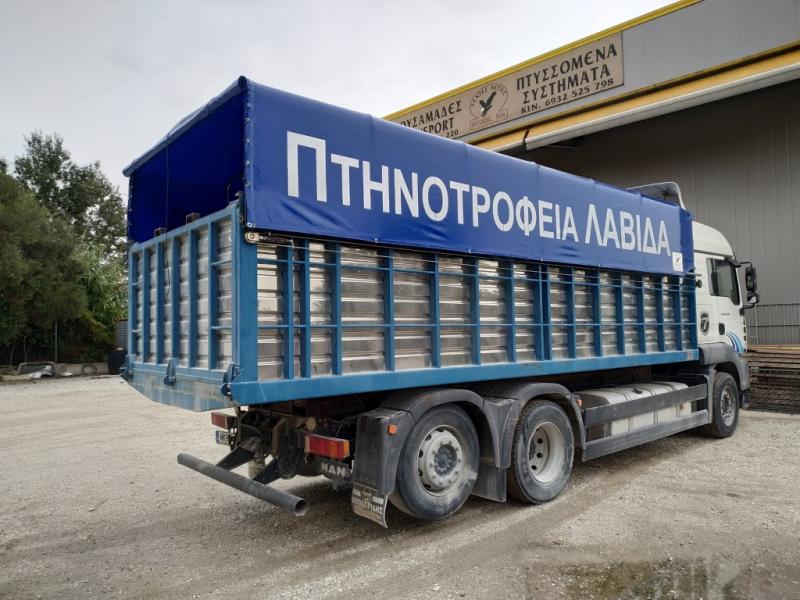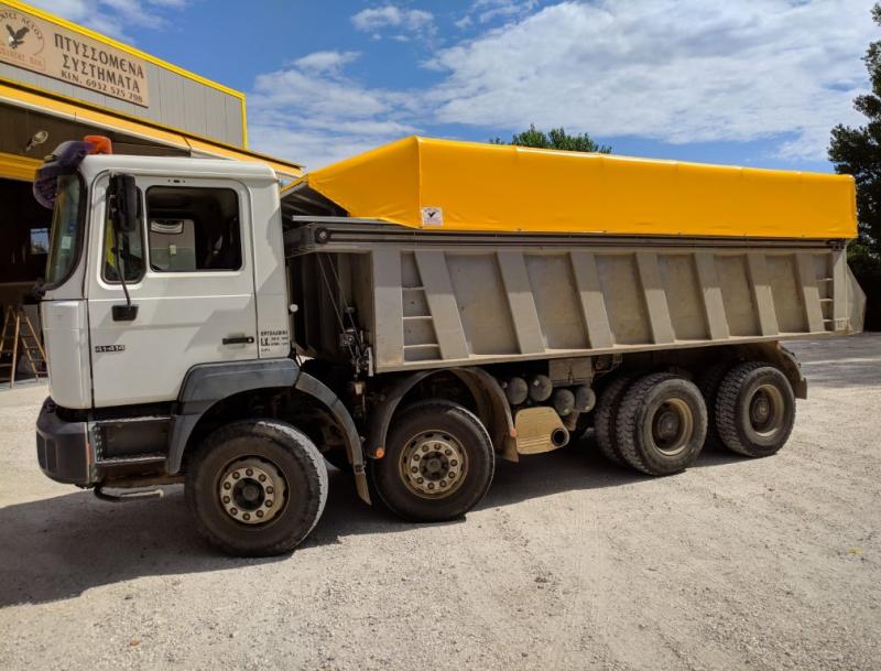 Κατασκευάζουμε πτυσσόμενα συστήματα κάθε τύπου, με συρματόσχοινο και με καδένα, σε παντός τύπου φορτηγό (χωματουργικά, εμπορικά, κ.α.)